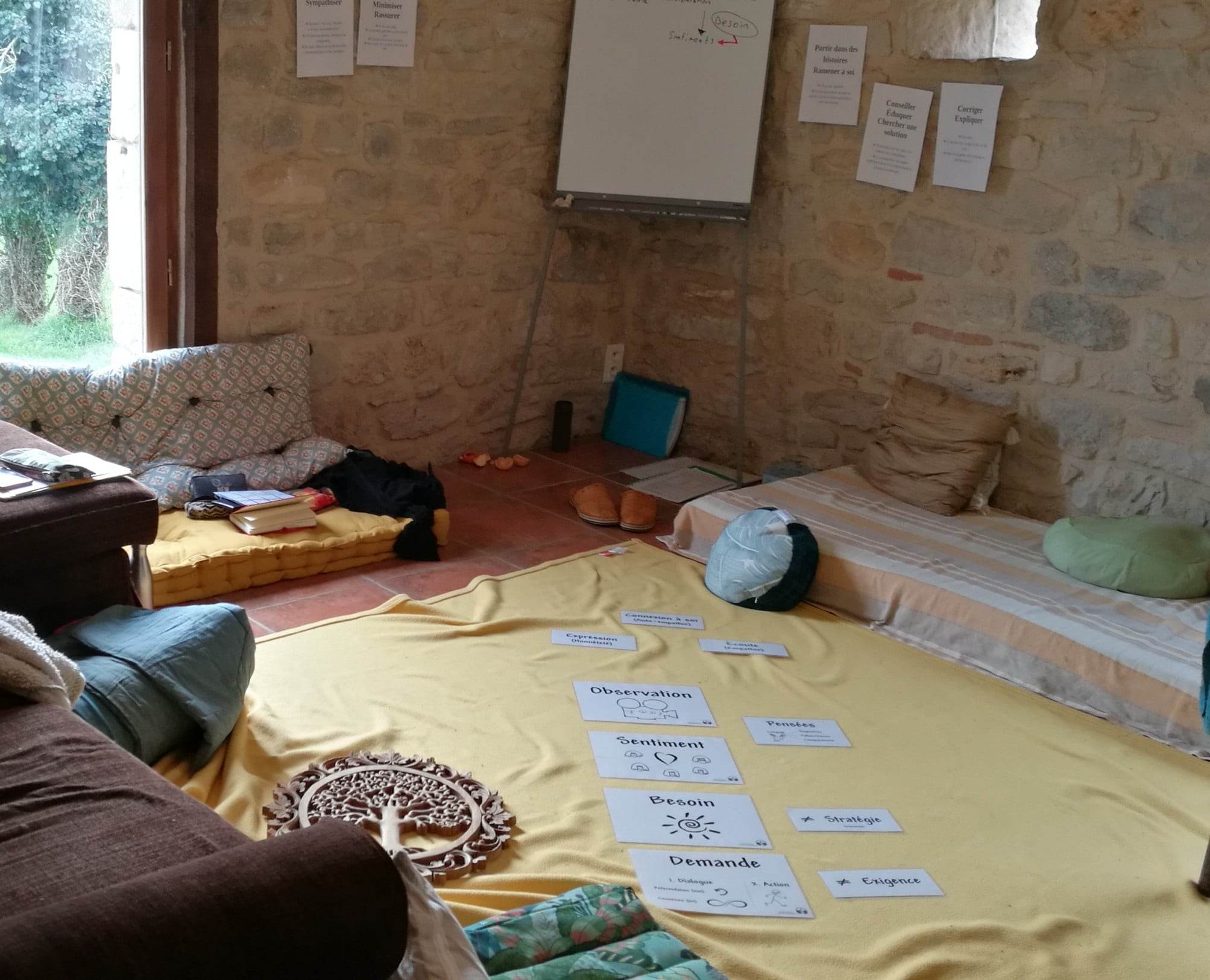 Dans mon précédent article j’avais déjà abordé un peu ce qu’était la communication non violente, et je parlais d’un point de vue beaucoup plus théorique que pratique car je n’avais pas encore vécu l’expérience de l’immersion dans la CNV. Il me tardait de vivre cette première expérience, tout en ne sachant à quoi m’attendre précisément. J’avais l’intuition que ça allait impacter ma vie d’une manière extrêmement positive mais je ne savais pas quelle forme cela prendrait concrètement.