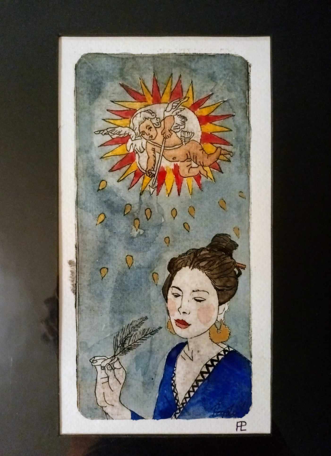 Si notre chemin ne passe plus du tout par là, eh bien, il ne nous restera plus qu’à continuer notre route vers de nouveaux horizons! Un peu de nostalgie est permise, mais en aucun cas une vie la tête tournée vers le passé – comme on a parfois l’impression de voir dans la carte de l’Amoureux – qui s’apprête à choisir l’une des deux femmes, mais sa tête reste tournée vers celle qu’il laisse a priori dans le passé… [une interprétation possible parmi tant d’autres]. Cupidon s’apprête à le transpercer de sa flèche pour le faire trancher… ou lui faire quitter enfin l’ancienne situation qu’il ne se résout pas à choisir de quitter.